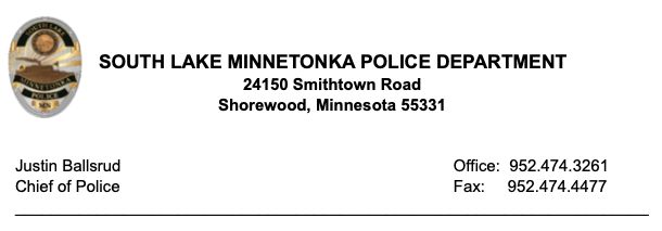 Any questions should be directed to Lieutenant Mike O’Keefe at 952-474-3261.